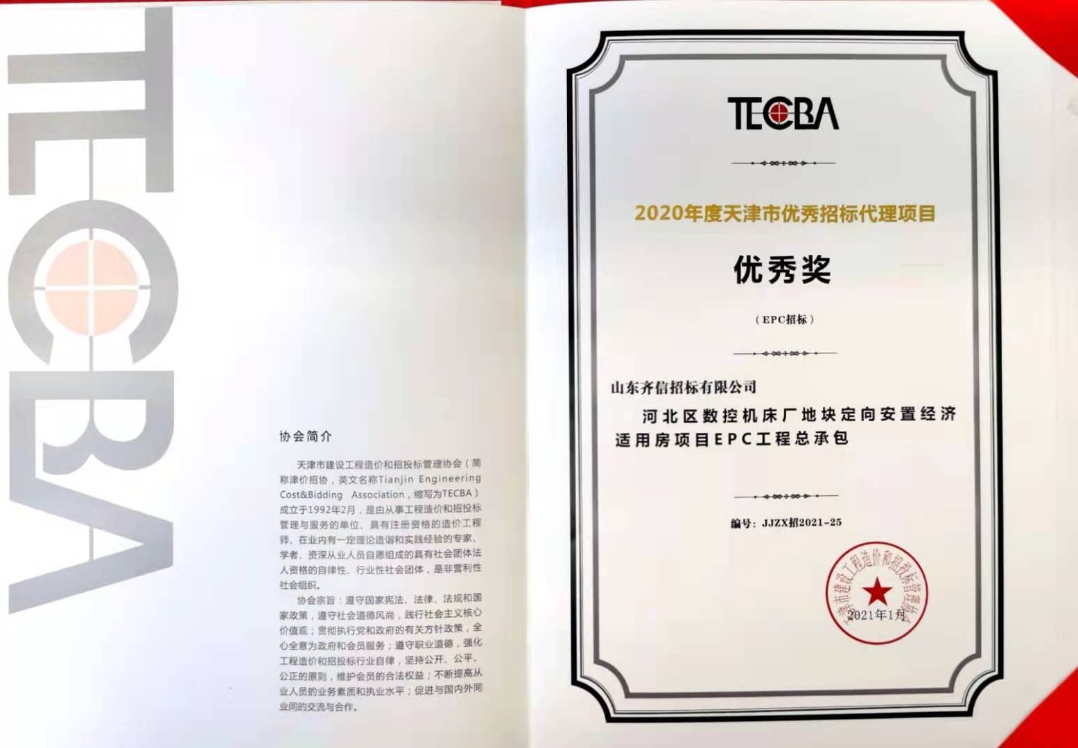 2021年1月,天津市建設(shè)工程造價和招投標(biāo)管理協(xié)會公布2020年度天津市“優(yōu)秀招標(biāo)代理項目”、“優(yōu)秀政府采購代理項目”,齊信天津分公司的“河北區(qū)數(shù)控機床廠地塊定向安置經(jīng)濟適用房項目EPC工程總承包”入選優(yōu)秀招標(biāo)代理項目,“天津大學(xué)23、24齋修繕工程”入選優(yōu)秀政府采購代理項目。