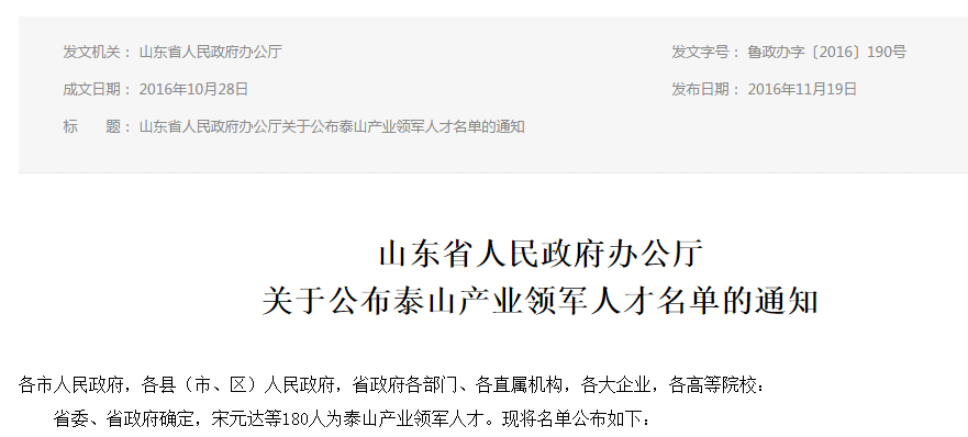 9. 10月底,經(jīng)過(guò)組織動(dòng)員、初步評(píng)選、專家評(píng)審、現(xiàn)場(chǎng)考察、公示公告等嚴(yán)格程序,公司申報(bào)投資建設(shè)項(xiàng)目綜合服務(wù)產(chǎn)業(yè)鏈項(xiàng)目成功入選“2016年度泰山產(chǎn)業(yè)領(lǐng)軍人才工程”,董事長(zhǎng)郭培勛入選“泰山產(chǎn)業(yè)領(lǐng)軍人才”。
